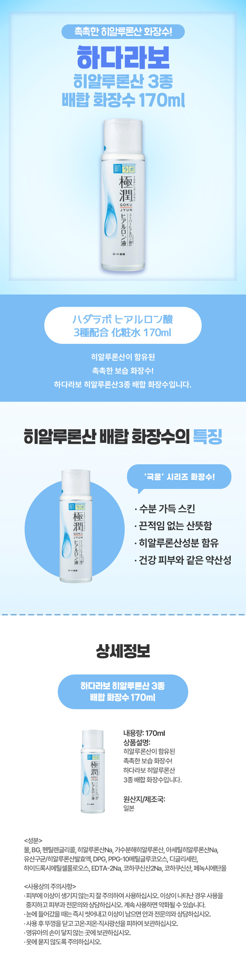 하다라보 히알루론산3종 배합 화장수 170ml