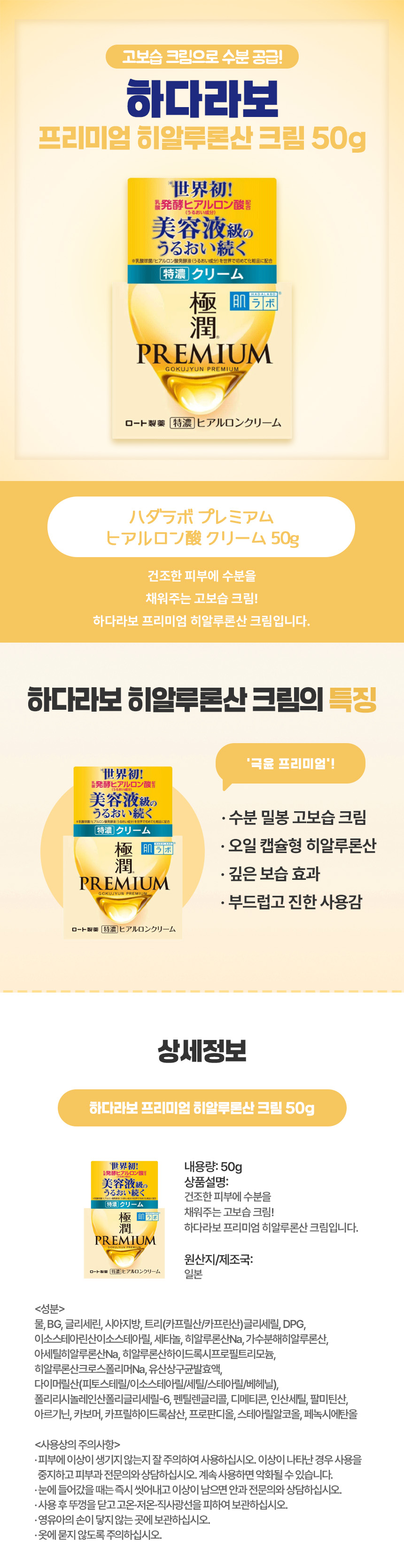 하다라보 프리미엄 히알루론산 크림 50g