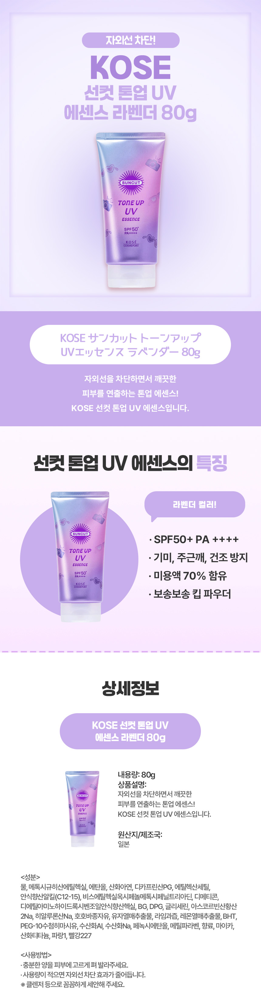 KOSE 선컷 톤업 UV 에센스 라벤더 80g