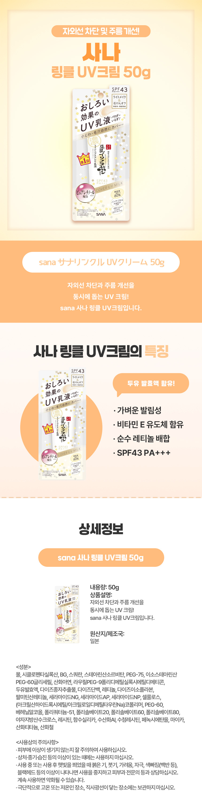 sana 사나 링클 UV크림 50g