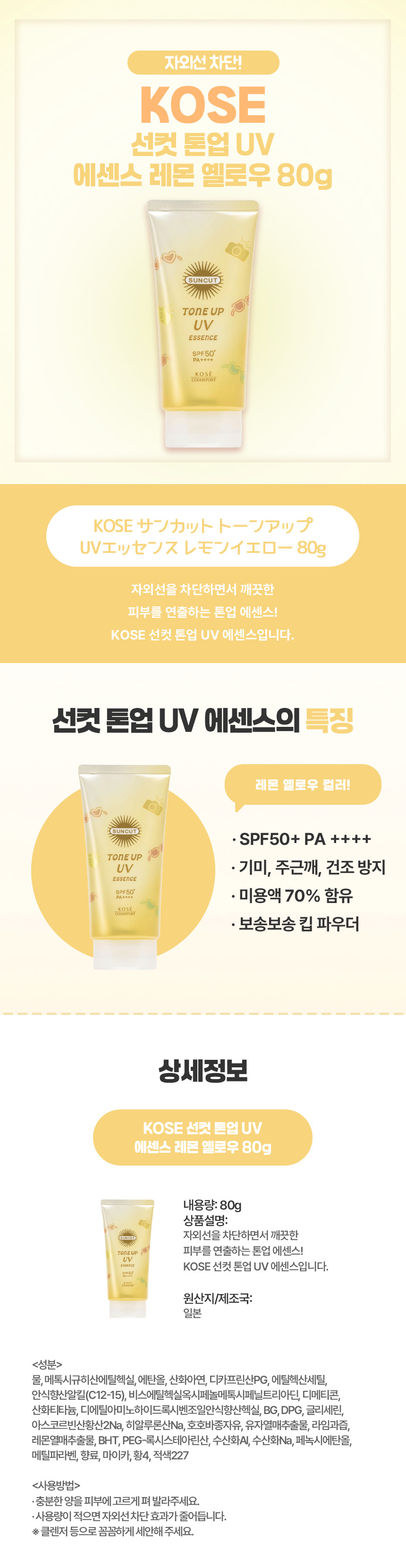 KOSE 선컷 톤업 UV 에센스 레몬 옐로우 80g