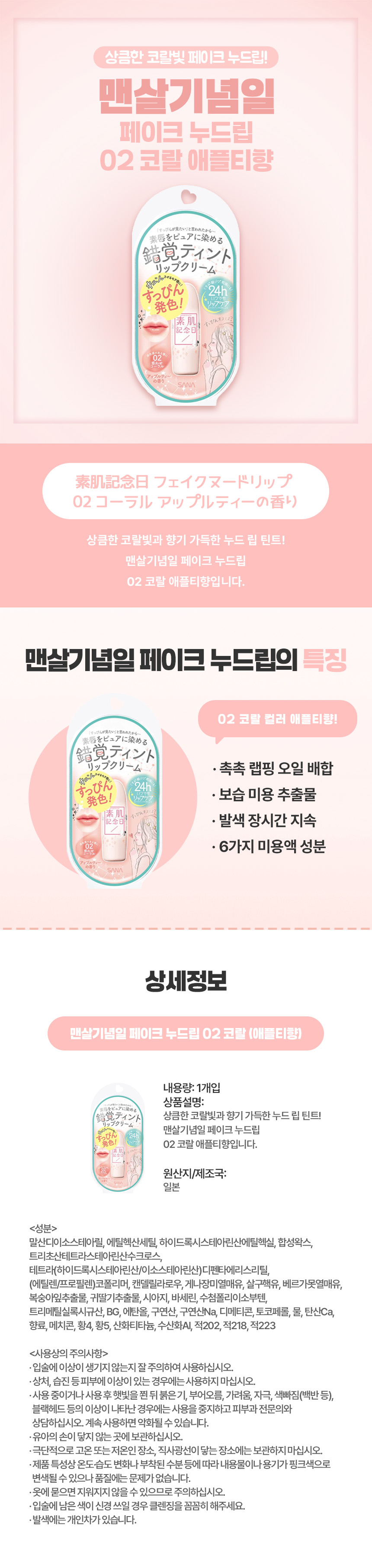 생기 있는 입술엔, 일본 직구 맨살기념일 페이크 누드립 코랄 애플티향