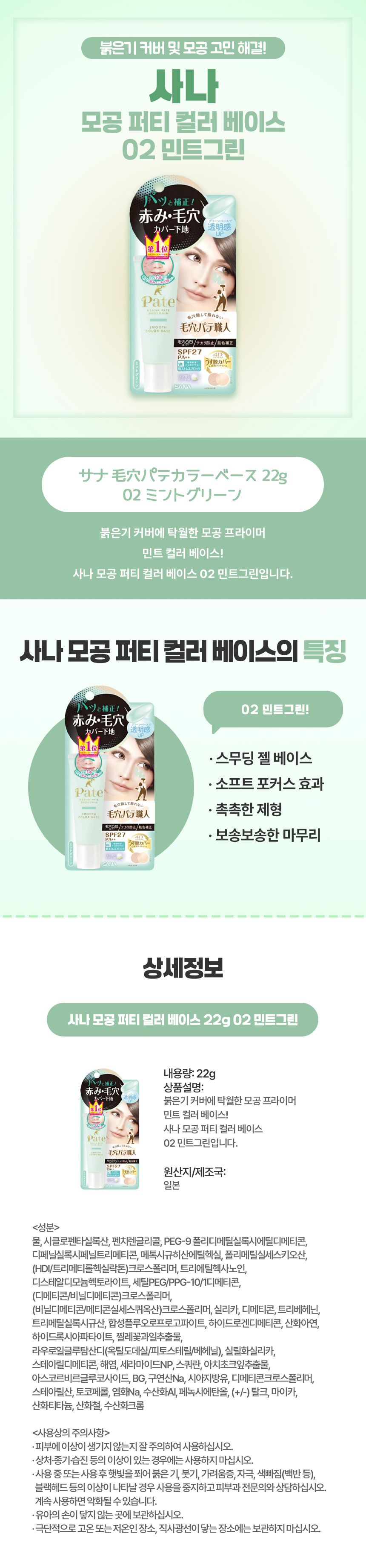 사나 모공 퍼티 컬러 베이스 22g 02 민트그린