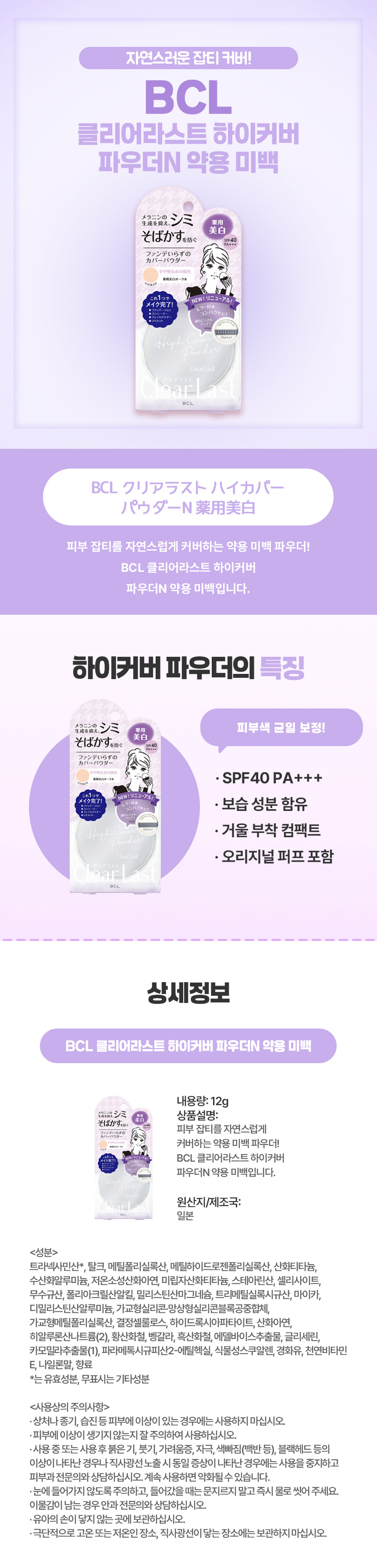 하이커버 메이크업엔, 일본 직구 BCL 클리어라스트 파우더 미백