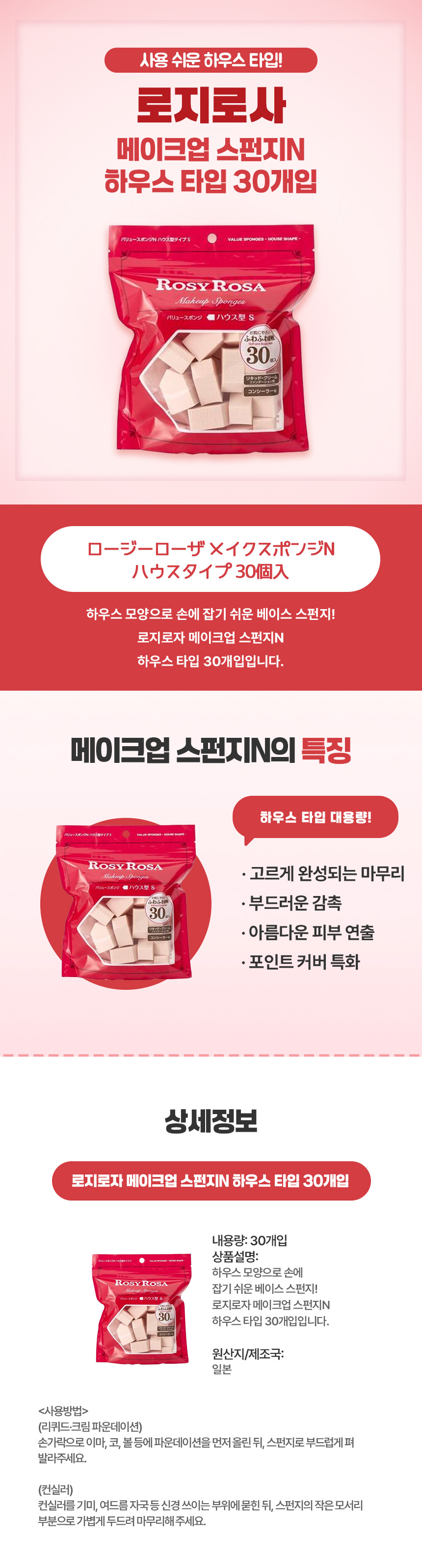 로지로자 메이크업 스펀지N 하우스 타입 30개입
