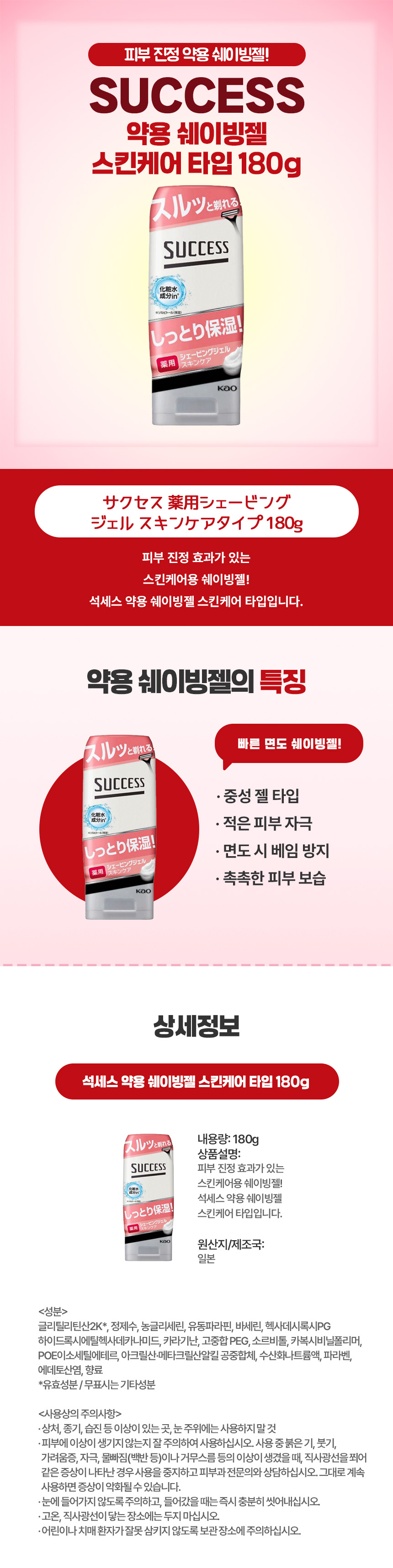 민감 피부 면도 후엔, 일본 직구 석세스 약용 쉐이빙젤 스킨케어 타입