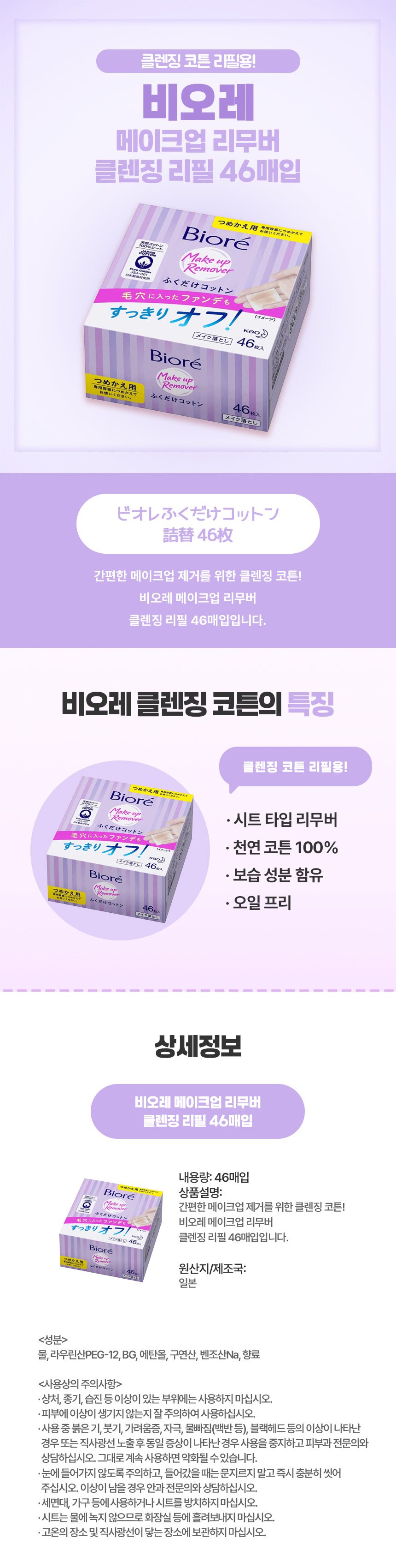 비오레 메이크업 리무버 클렌징 리필 46매입
