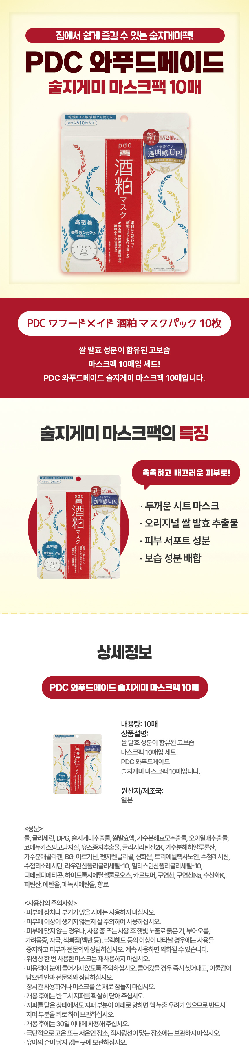 PDC 와푸드메이드 술지게미 마스크팩 10매