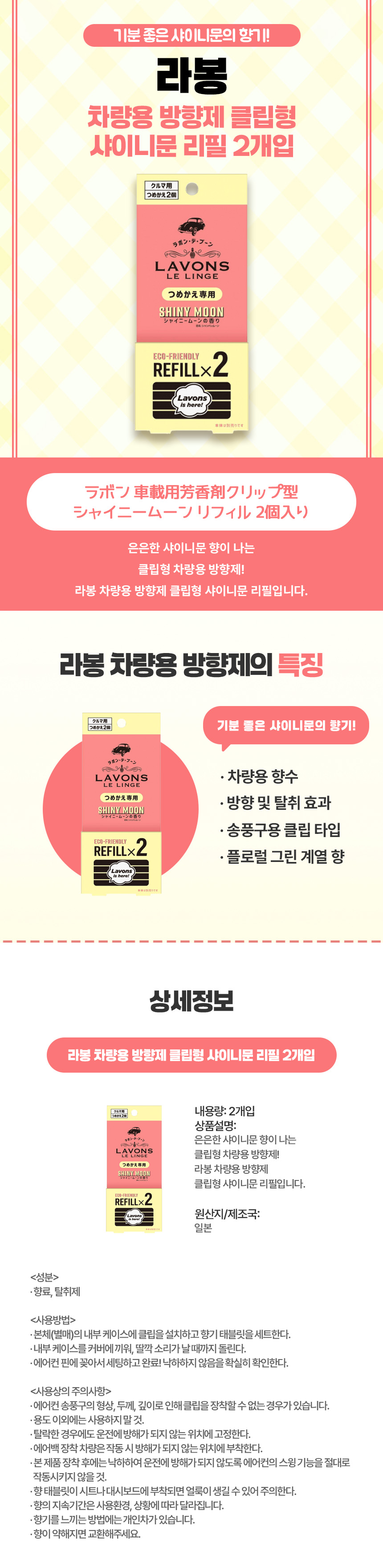라봉 차량용 방향제 클립형 샤이니문 리필 2개입