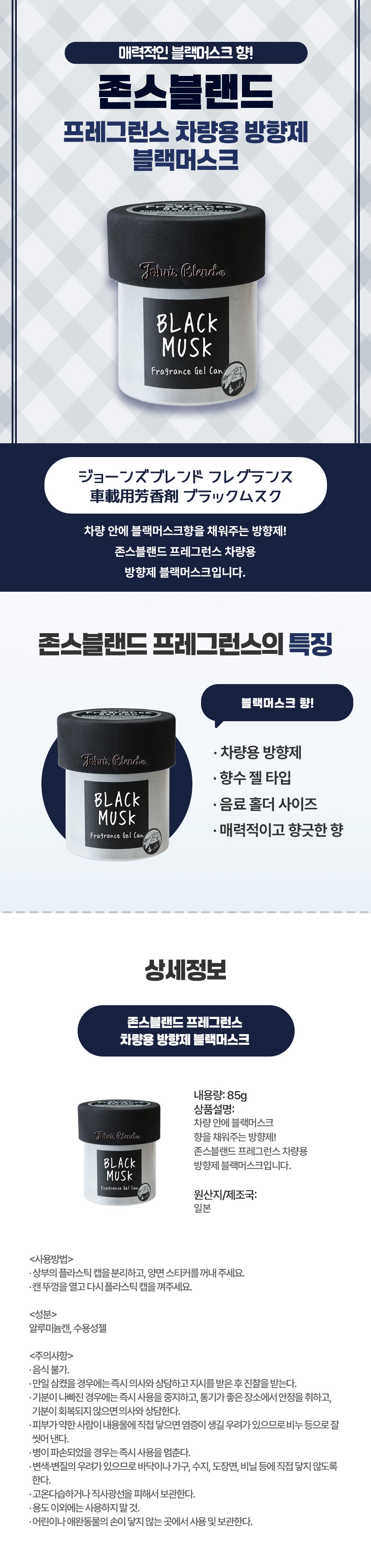 묵직하고 깊은 향, 일본 직구 존스블랜드 차량용 방향제 블랙머스크
