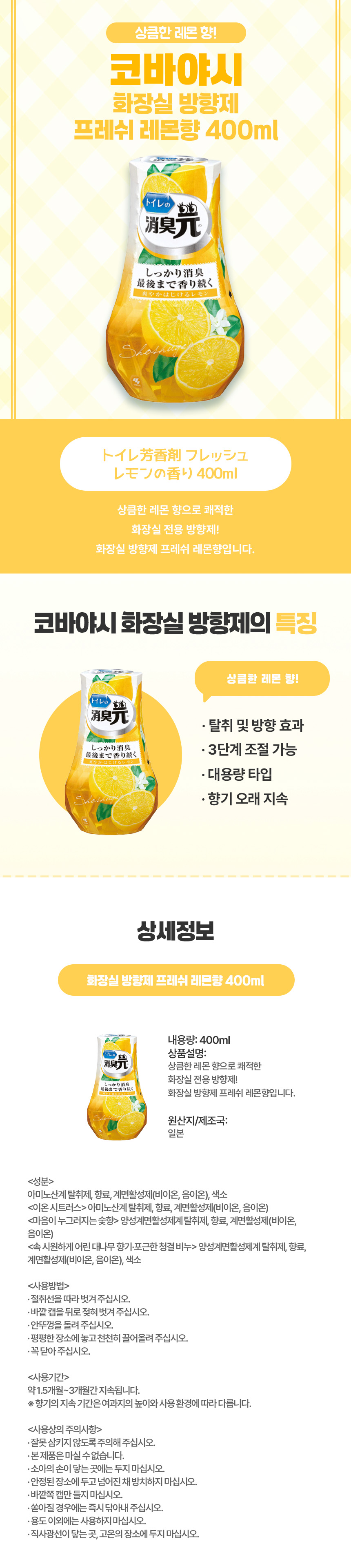 상큼한 레몬 향으로 쾌적한 화장실 전용 방향제