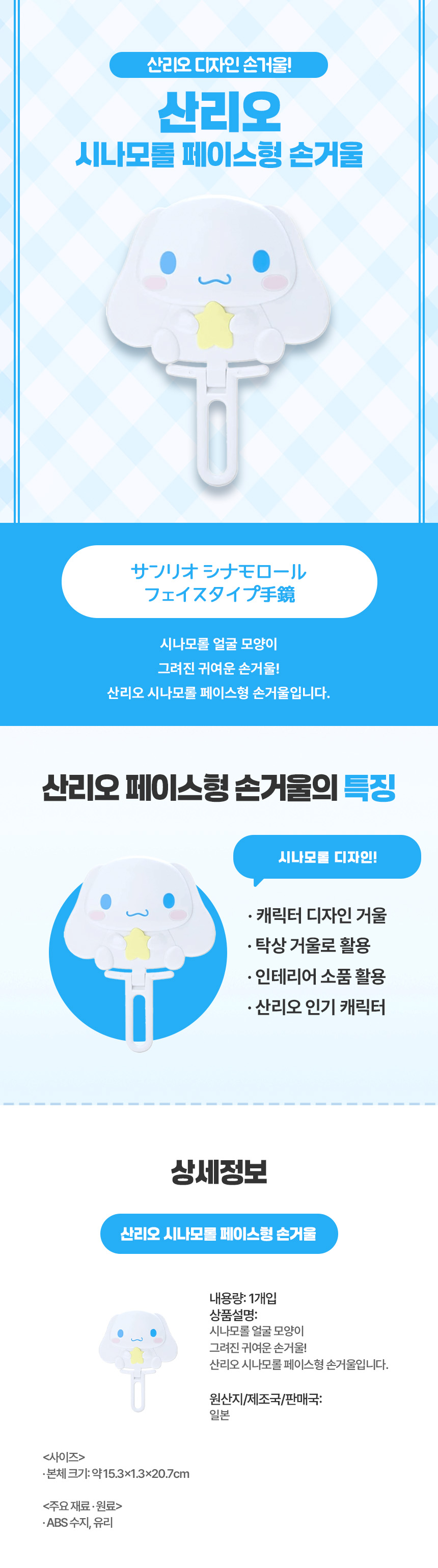 산뜻한 블루톤의, 일본 직구 산리오 시나모롤 페이스형 손거울