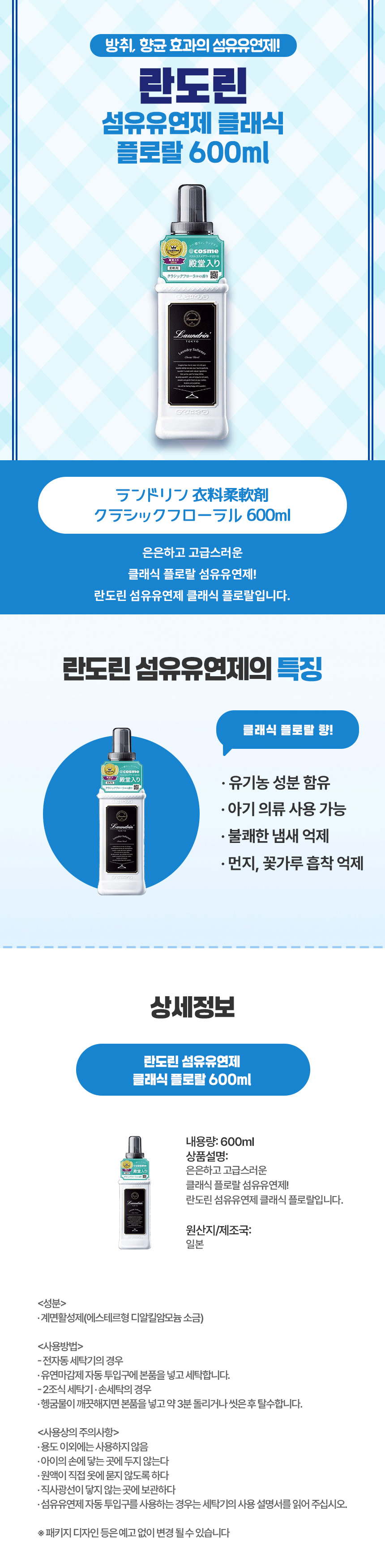 섬세한 감각의 일본 직구 란도린 클래식 플로랄 섬유유연제 본품