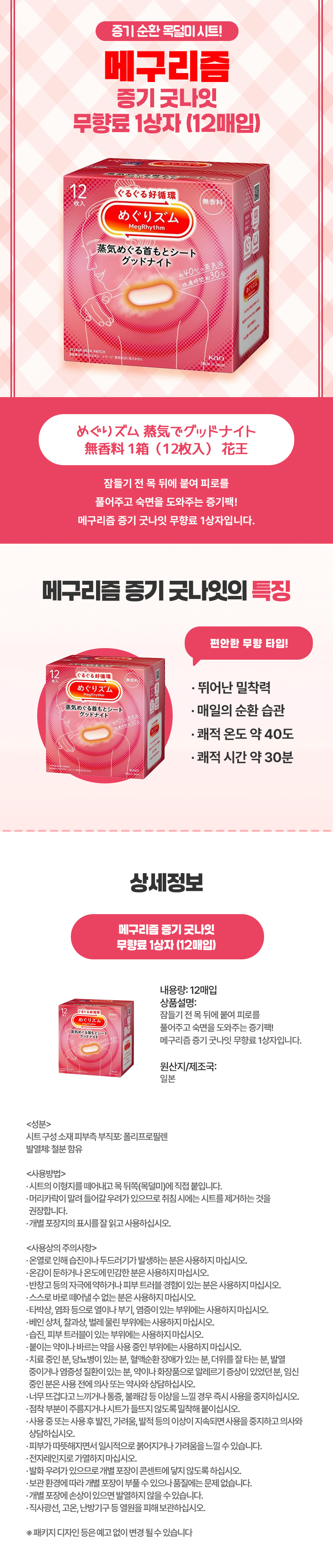 메구리즘 증기 굿나잇 무향료 1상자 (12매입)
