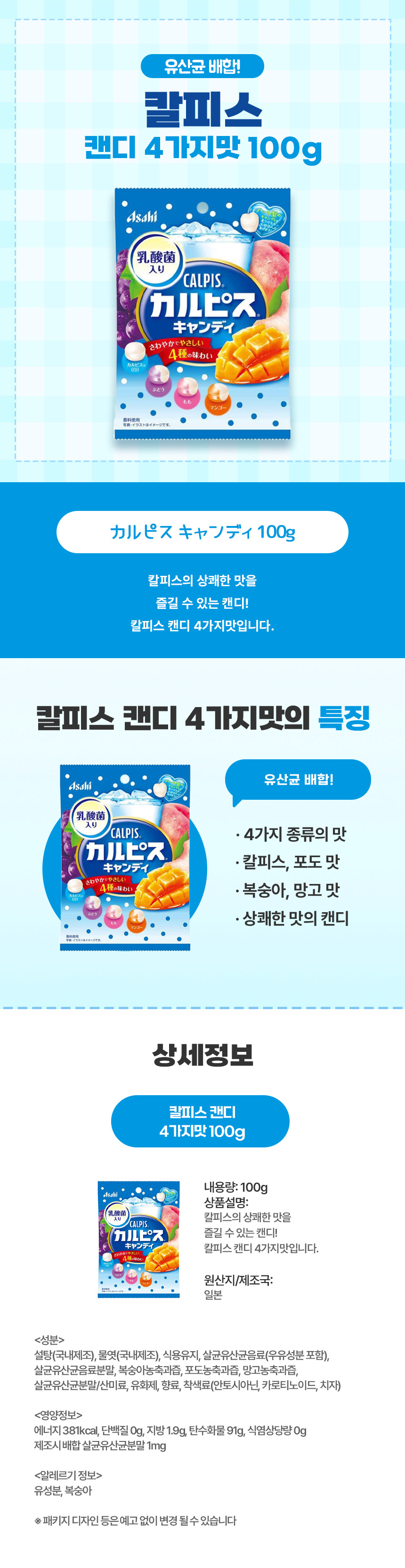 상쾌한 맛을 자랑하는 4종 칼피스 맛 캔디