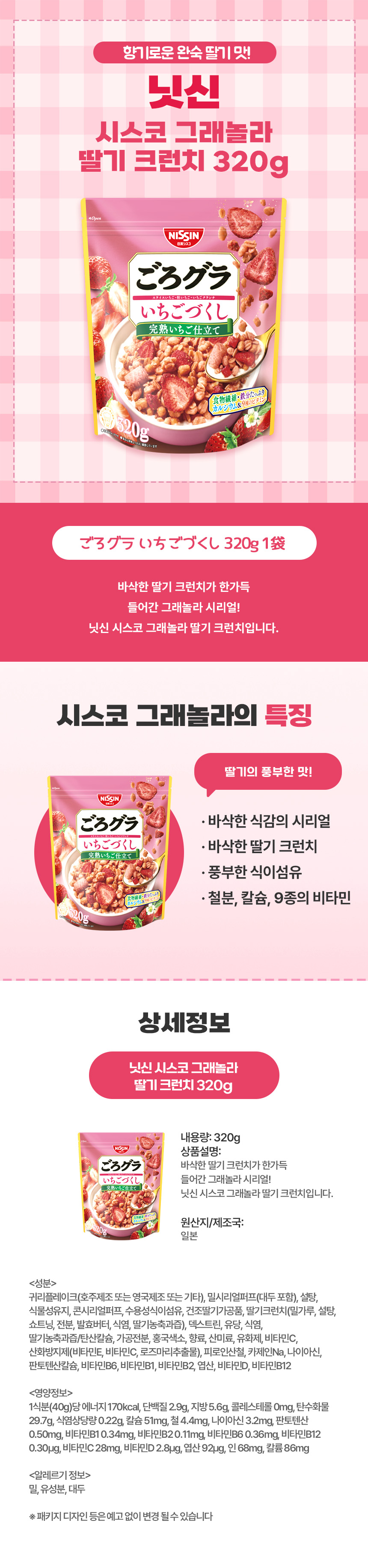 닛신 시스코 그래놀라 딸기 크런치 320g