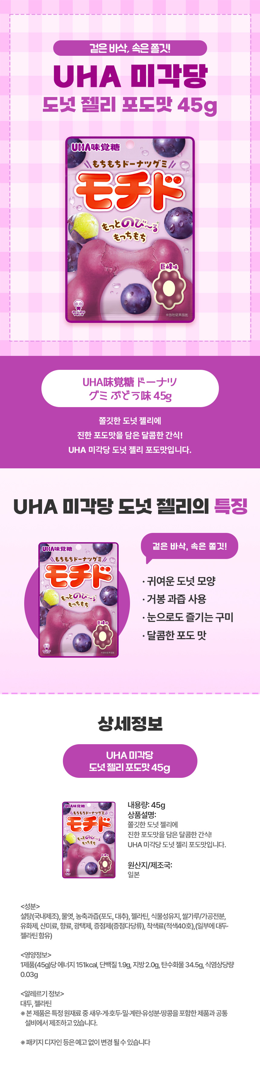 UHA 미각당 도넛 젤리 포도맛 40g