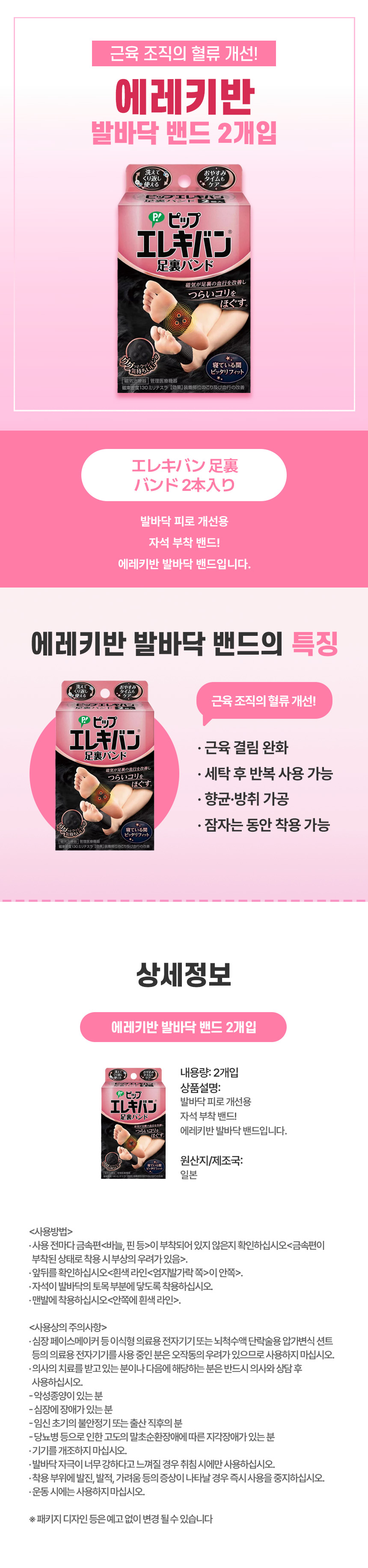 발 피로 완화엔, 일본 직구 에레키반 발바닥 밴드