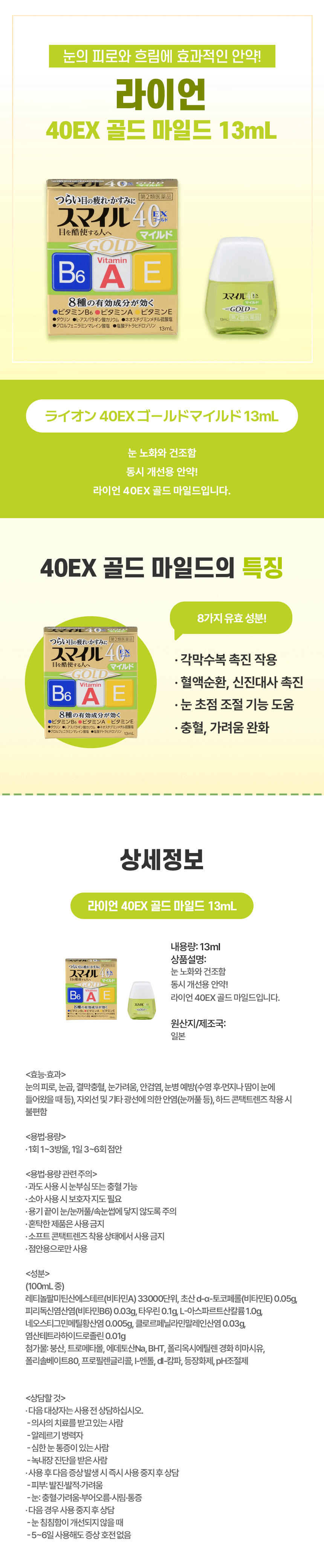 부드러운 쿨링, 일본 직구 라이언 40EX 골드 마일드 안약