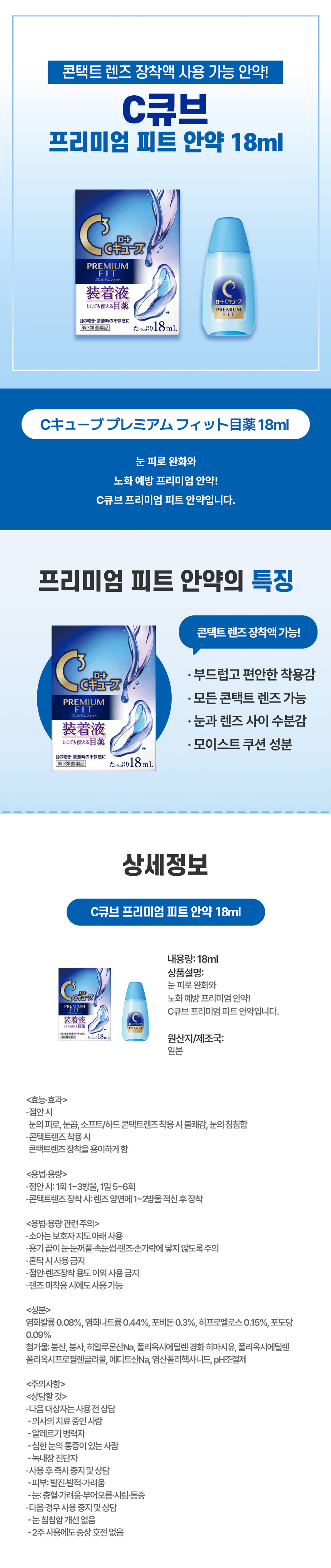 렌즈 피로 케어, 일본 직구 C큐브 프리미엄 피트 안약