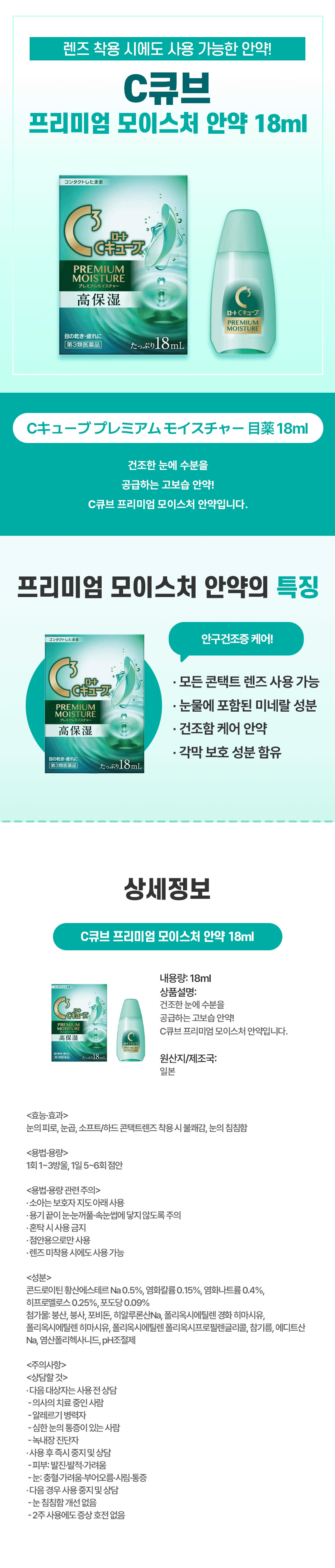 C큐브 프리미엄 모이스쳐 안약 18ml