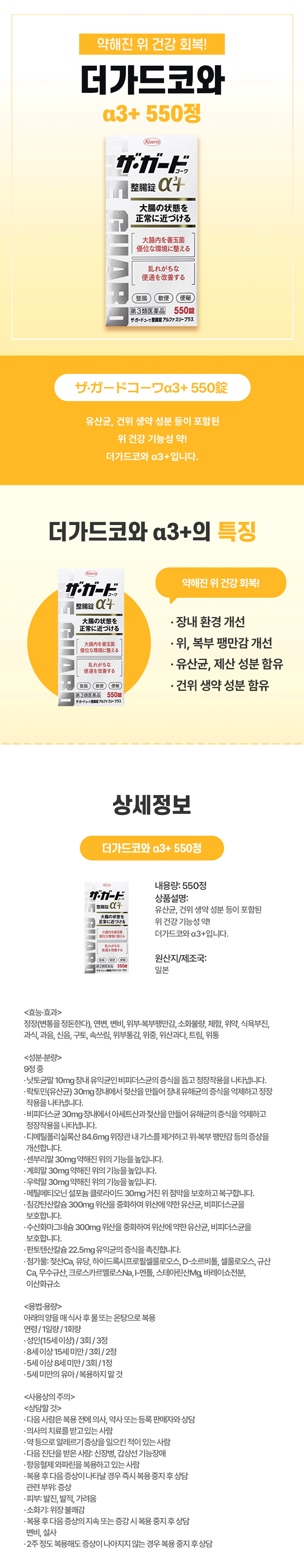 대용량으로 오래 쓰는, 일본 직구 더가드코와 α3+ 550정