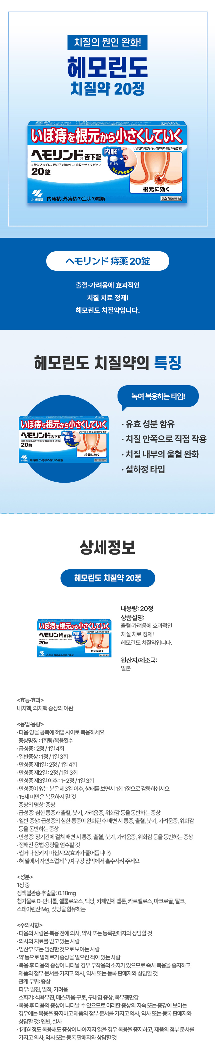 항문 통증 완화엔, 일본 직구 헤모린도 치질약 20정