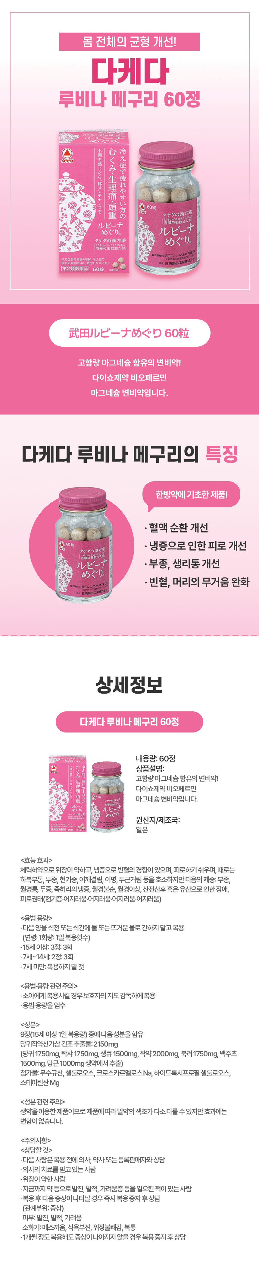 혈액순환 개선엔, 일본 직구 다케다 루비나 메구리 60정
