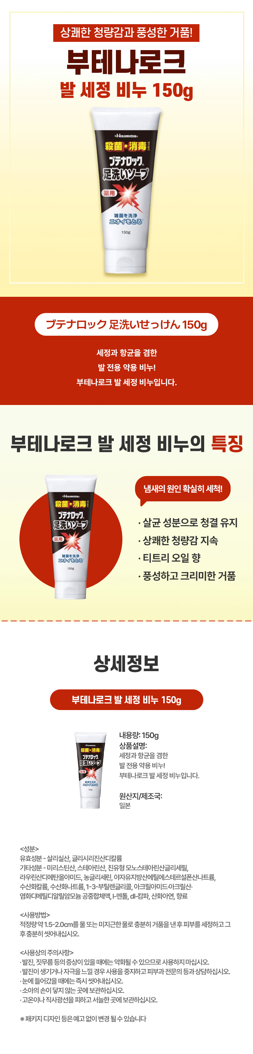 발 청결 케어 전용 세정 비누, 일본 직구 부테나로크