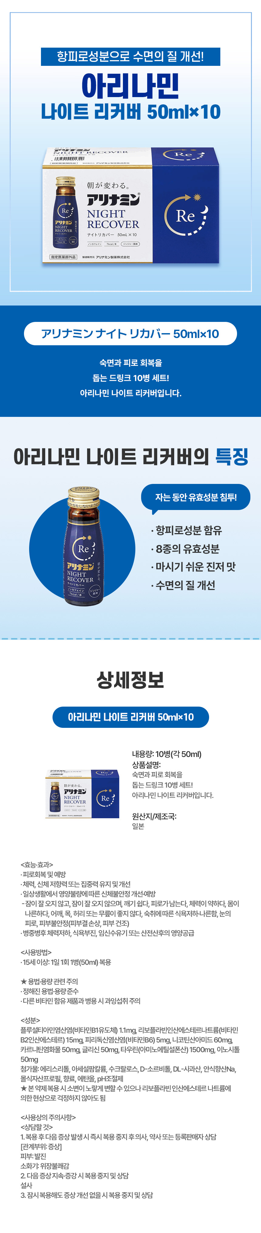 수면 중 피로 회복을 돕는 드링크, 일본 직구 아리나민 나이트 리커버