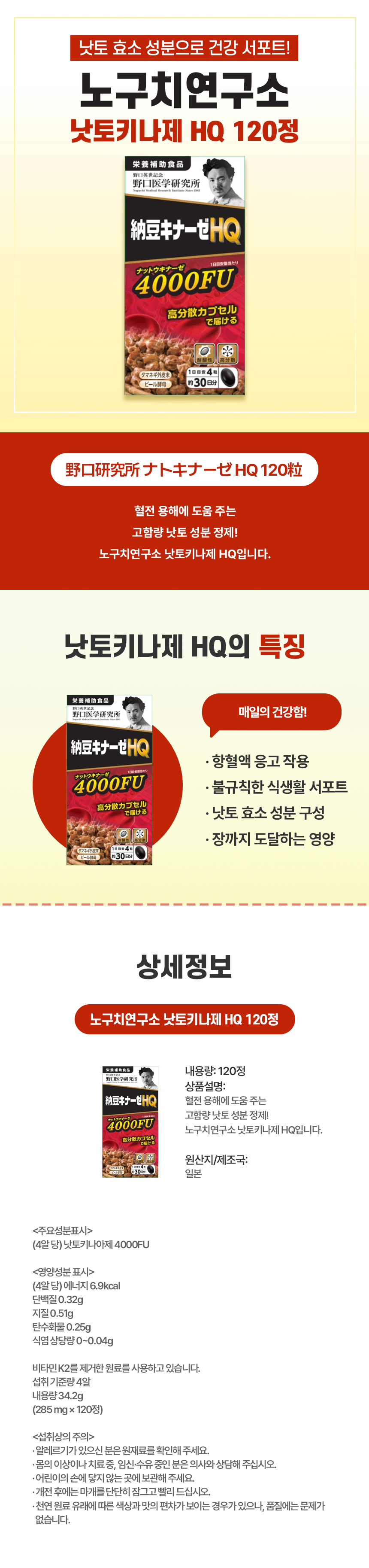 혈액 건강에 도움을 주는, 일본 직구 노구치 낫토키나제 HQ