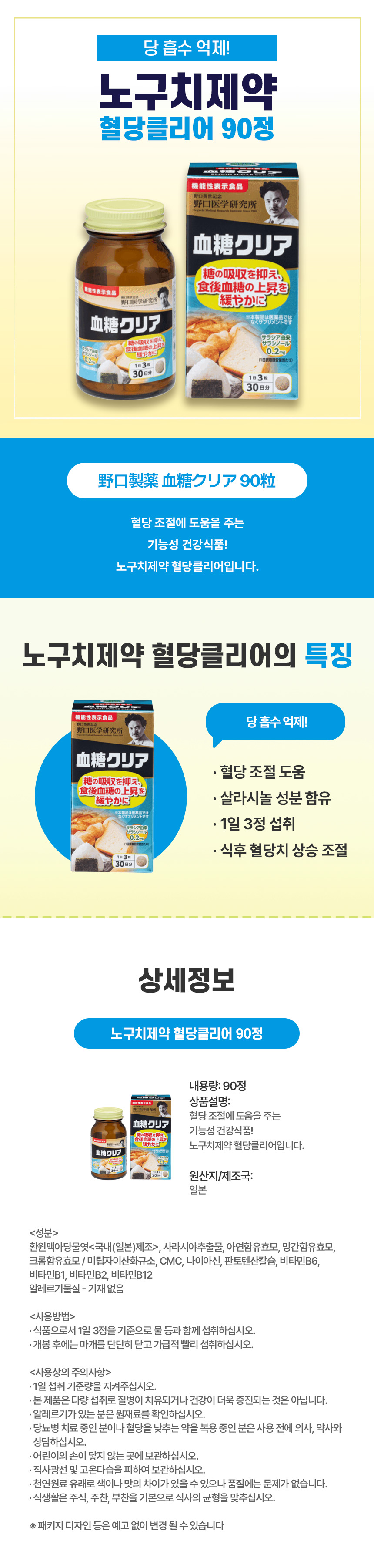 혈당 관리 보조 영양제, 일본 직구 노구치 혈당클리어