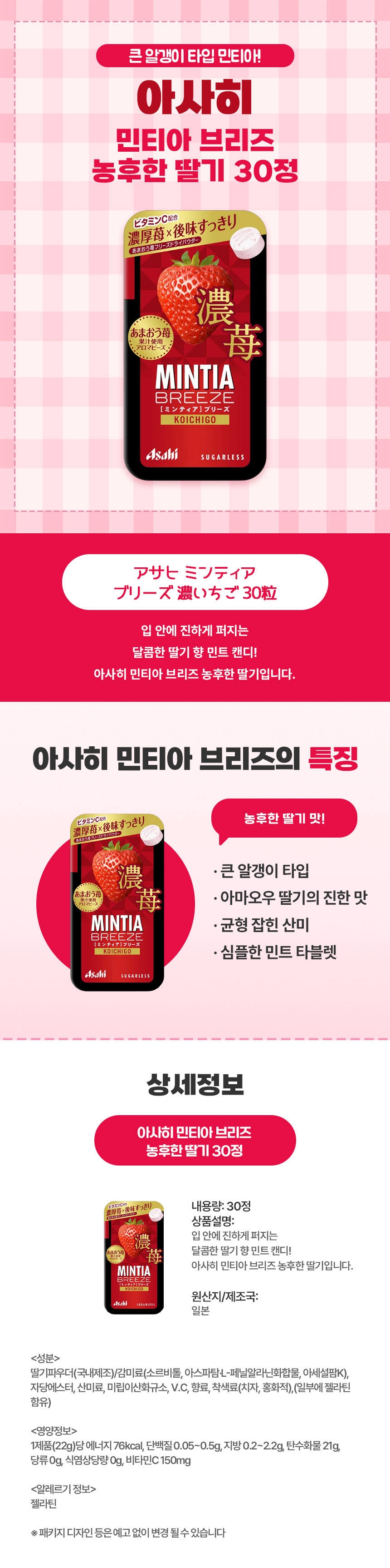 아사히 민티아 브리즈 농후한 딸기 30정