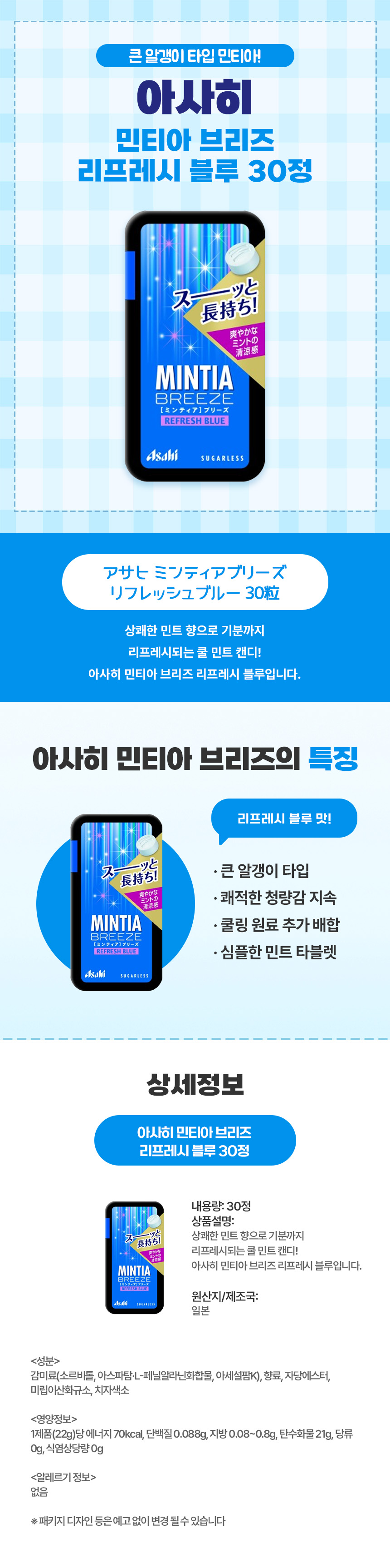 아사히 민티아 브리즈 리프레시 블루 30정