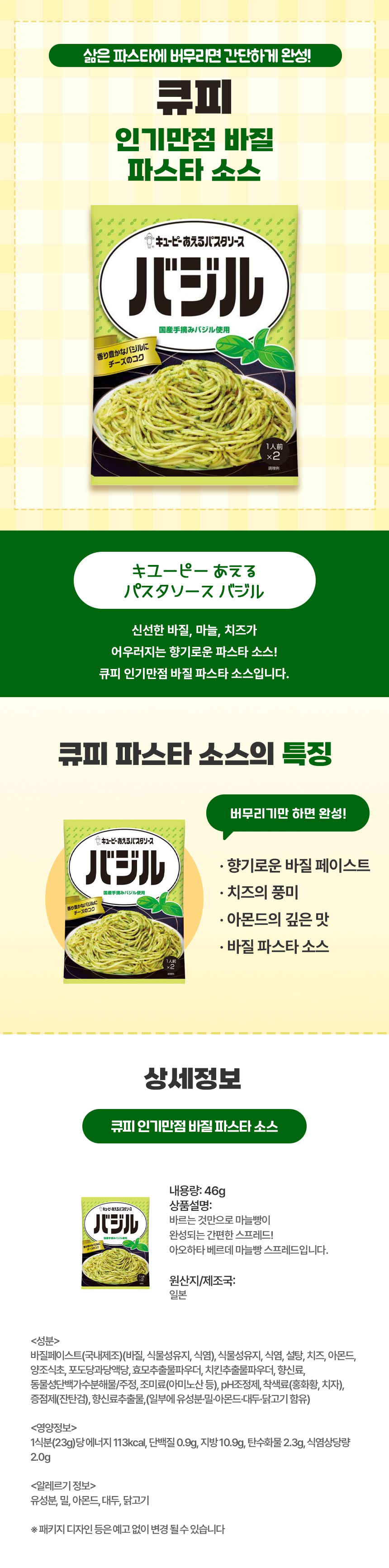 신선한 바질의 향과 오일 풍미, 일본 직구 큐피 파스타 소스