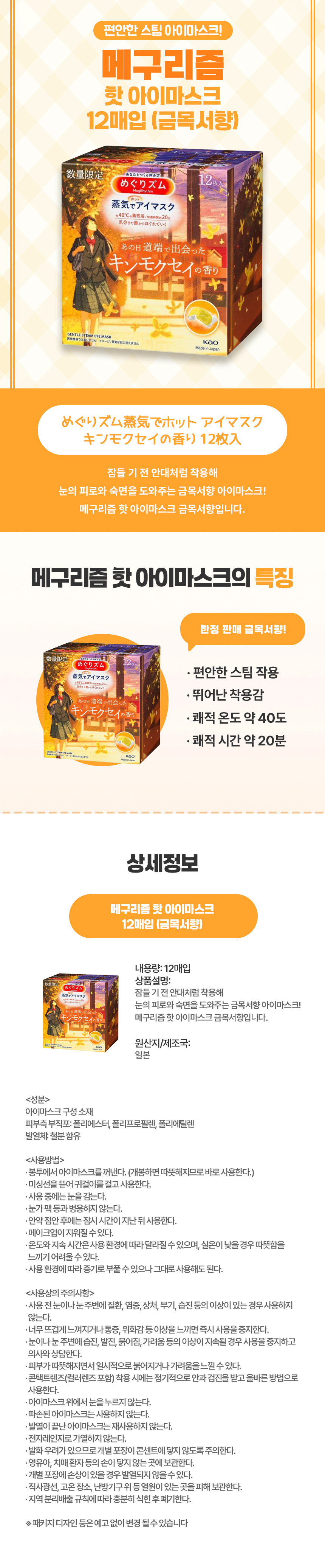 따뜻한 온기와 향기로 눈의 피로를 풀어주는, 일본 직구 메구리즘 아이마스크 금목서향