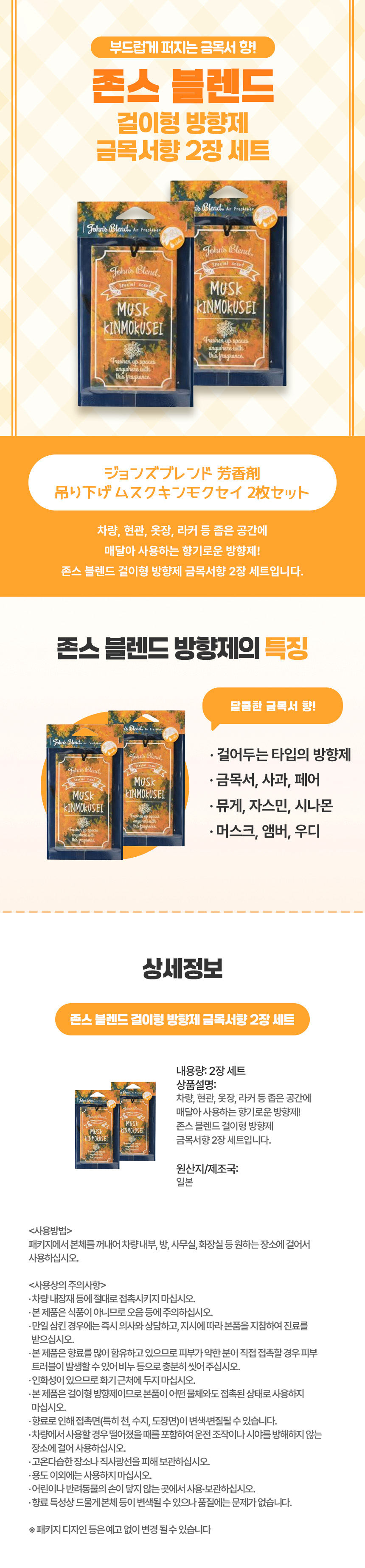포근한 향기를 오래 유지해주는 걸이형 방향제, 일본 직구 존스 블렌드 금목서향
