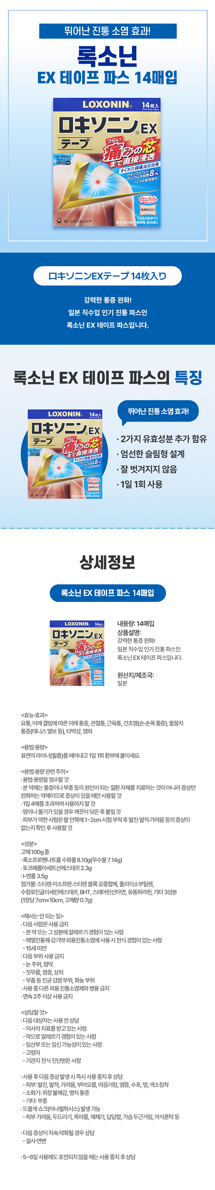 붙이기만 해도 통증 완화! 록소닌 EX 테이프 파스 14매입