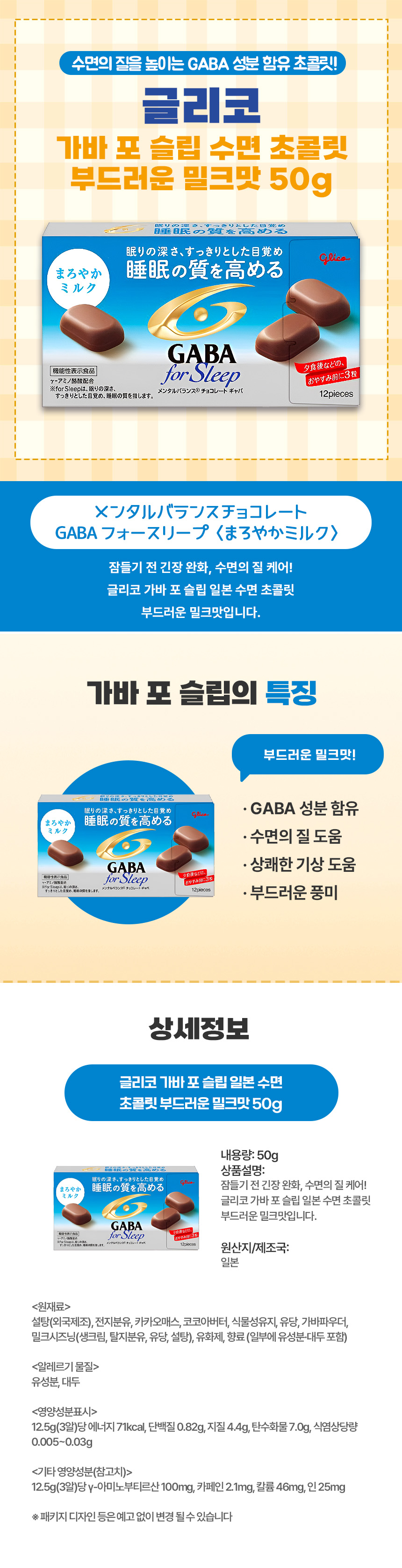 글리코 가바 포 슬립 일본 수면 초콜릿 부드러운 밀크맛 50g