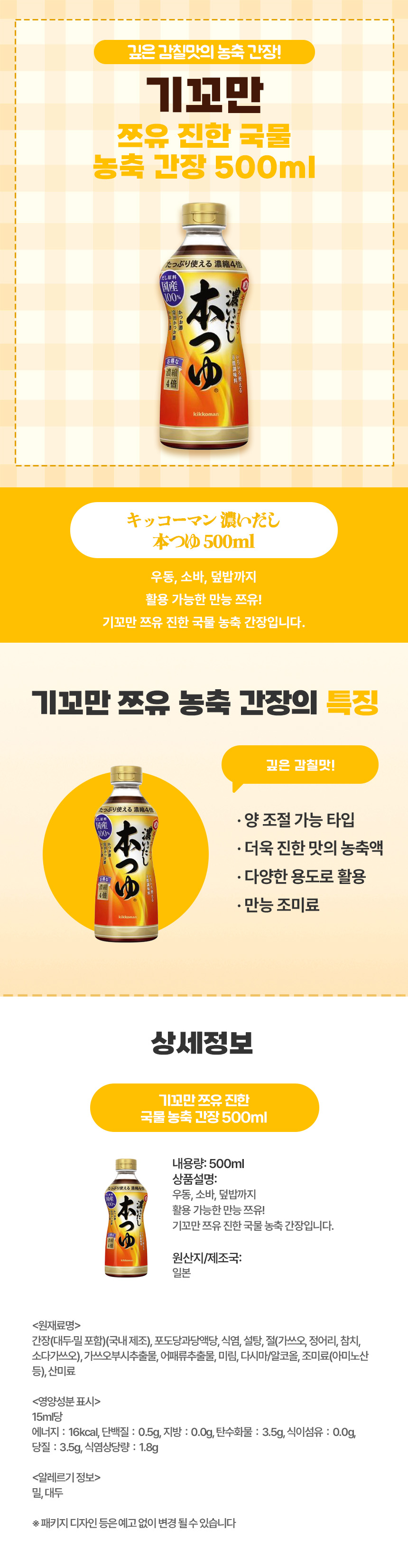 만능 일본 쯔유가 필요할 땐, 기꼬만 쯔유 진한 국물 농축 간장 500ml